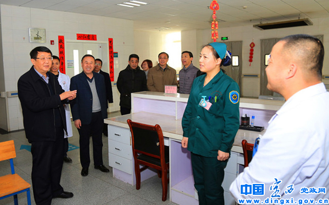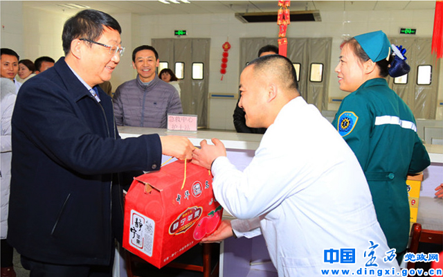 在定西市人民医院,唐晓明先后来到医生值班室、护士站和住院病房,与医务人员亲切交谈,详细了解节日期间值班备岗、安全管理等工作,强调春节期间是事故多发期,医护人员要发扬顽强奋战、迎难而上的优良作风,切实做好伤病救治、应急保障等工作,继续坚守岗位、勤奋工作,为每一位患者提供优质、高效的服务,切实让住院患者安心治疗、舒心养病,为广大市民度过一个欢乐、祥和的春节提供坚强有力的医疗保障。唐晓明随后看望了留院患者,给他们送去了慰问品,并详细询问了他们的病情,嘱咐他们在院安心治疗,并祝他们新春快乐,早日康复。 |