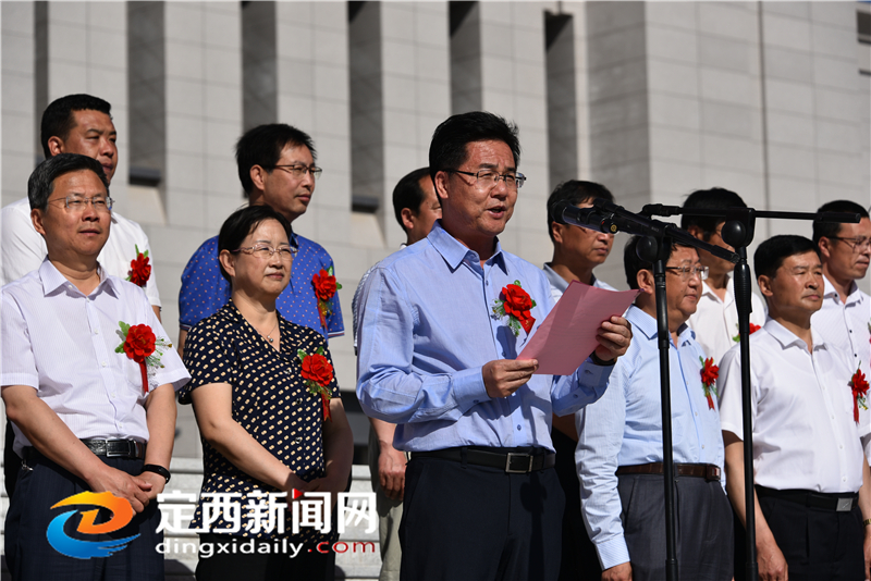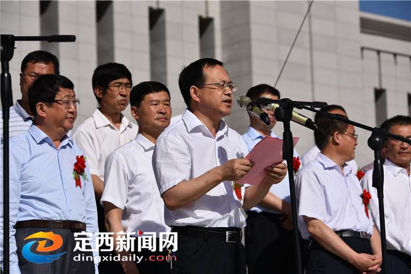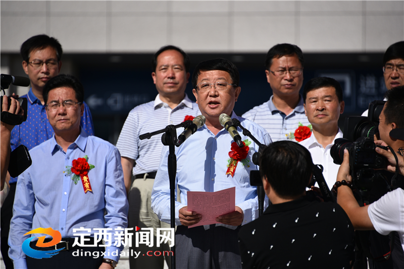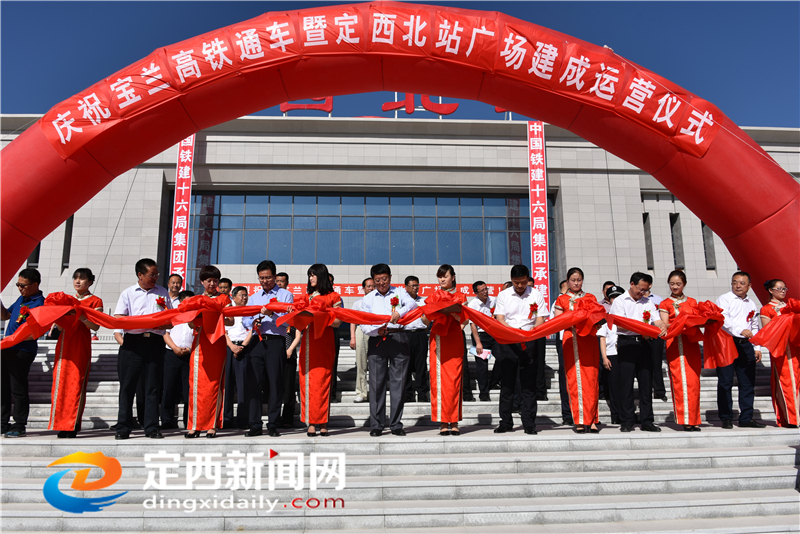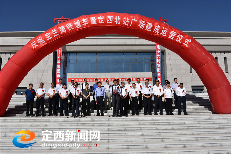 列车首发仪式后,市上还在站前广场举行了隆重热烈的宝兰高铁通车暨定西北站广场建成运营庆祝仪式。唐晓明、李育宏分别讲话,戴超主持仪式并介绍了宝兰高铁定西段建设的有关情况。仪式上,唐晓明、郑红伟、戴超、李育宏等为宝兰高铁定西北站广场建成运营剪彩。