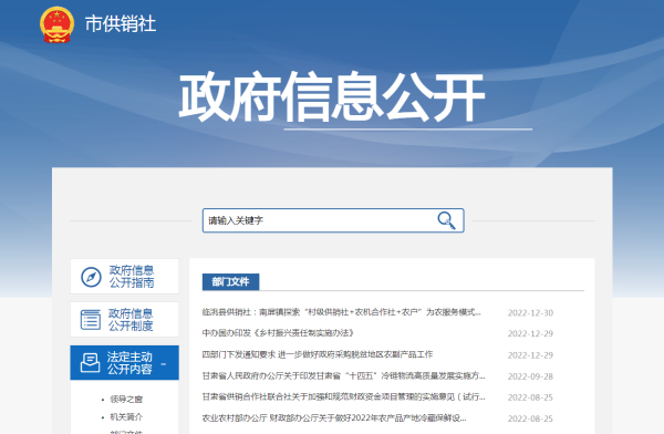 根据《中华人民共和国政府信息公开条例》(以下简称《条例》)和省、市关于做好2022年政府信息公开工作年度报告编制发布工作的通知要求,结合市供销联社实际编制。本年度报告由总体情况、主动公开政府信息情况、收到和处理政府信息公开申请情况、政府信息公开行政复议和诉讼情况、存在的主要问题及改进情况、其他需要报告的事项等六部分组成。本年度报告所列数据的统计期限自2022年1月1日至2022年12月31日止。 一、总体情况 2022年,市供销联社严格按照政府信息公开的要求及便民、实用、及时的原则,切实加强组织领导、靠实工作责任、健全工作机制、结合工作实际,认真创新信息公开的载体与途径,以政府信息公开统一平台为主,充分利用微信公众号、简报等各种信息传播媒体,及时、全面地公开市供销联社信息。今年以来,市供销联社在定西市政府信息公开平台主动公开各类信息共64条,利用简报公布信息125期。