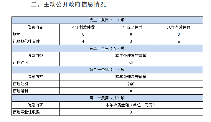 五、存在的主要问题及改进情况 (一)工作中存在的主要问题。2022年,我局切实抓好政务公开年度工作要点落实,加快政务公开工作规范化、标准化、信息化建设,取得了一些成效,但还存在一些问题和不足:一是个别科室、局属单位对政务公开工作的认识和重视程度不够,对一些业务或者公开的不主动、不及时,或者公开不细致;二是由于政务公开涉及面广、政策性强,在公开的时间上很难达到一致,在公开的格式上不能完全统一。 (二)改进措施。在今后的工作中,我们将进一步优化政府信息管理、信息发布、解读回应、依申请公开、公众参与、监督考核等工作流程,构建系统完备、易于操作、运转有效的制度规范体系,实现应公开尽公开。 六、其他需要报告的事项 依据《政府信息公开信息处理费管理办法》规定,本年度本机关未收取政府信息公开信息处理费。