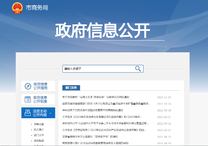 (一)加强组织领导,健全工作机制。市商务局始终把做好政务信息公开工作列入工作议事日程,与业务工作同部署、同落实,并健全了领导机制,及时调整我局政府信息公开工作领导小组人员,制定《定西市商务局2022年政务公开工作要点》,明确市商务局政务公开的工作任务、公开内容和具体要求,有效保障了政务公开工作的顺利开展。严格执行《定西市商务局信息公开指南》,坚持信息依申请公开办法、公开审核办法等制度,主动公布投诉电话,积极接受相关部门和人民群众的监督和评议,进一步加大了政务公开力度。 (二)完善工作制度,规范工作程序。根据《中华人民共和国政府信息公开条例》和省、市有关规章和文件要求,结合实际,修订完善我局信息公开制度,明确公开内容,细化公开程序,明确信息公开工作的指导思想和原则、内容、公开的项目、形式和落实信息公开的措施。积极落实信息发布审核制度和保密审查制度,按照“先审查、后公开”的原则,所发布信息由相关科室负责人审查后,分管领导签字审批后予以公开,确保发布内容的准确性和时效性。加强对全体干部职工保密工作的宣传和教育,保证“上网信息不涉密、涉密信息不上网”。实行监督检查和责任追究制。按照“谁提供、谁审核、谁负责”的原则,明确职责分工、审查程序和责任追究,有效保障我局政府信息公开内容的安全性、规范性和针对性。 (三)推进依法公开,规范政务公开内容。坚持应公开尽公开原则,突出重点领域信息公开,公开了部门工作职责,包括职能、机构设置及各内设机构的具体职能、权责清单、“三公”经费、业务工作范围等方面的内容。在定西政务公开平台公布领导之窗、机构职能、政策解读、公示公告、财务预决算、政策解读等信息321条。定西商务公众号发布各类信息331条。 二、主动公开政府信息情况