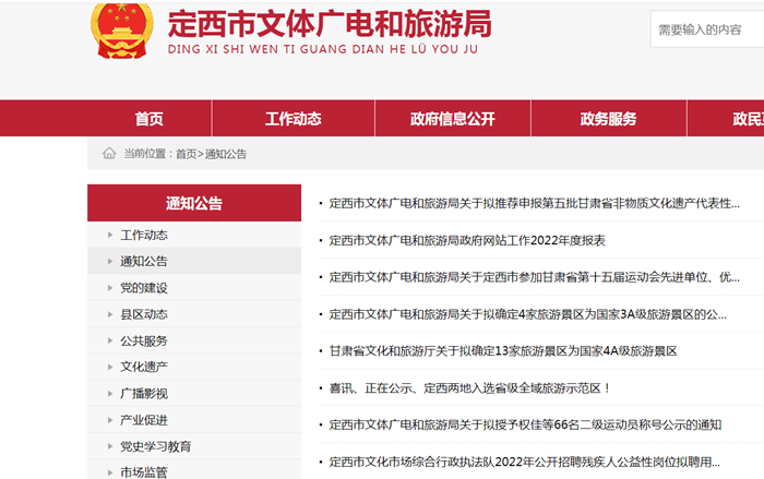 定西市文体广电和旅游局2022年政府信息公开工作年度报告 |