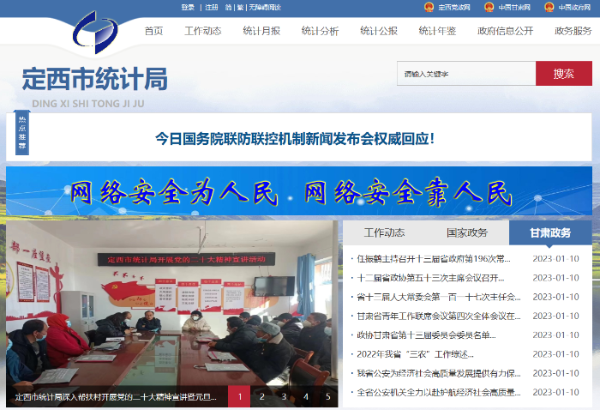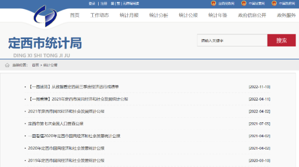 根据《中华人民共和国政府信息公开条例》要求,现发布《定西市统计局2022年政府信息公开工作年度报告》。本报告由总体情况、主动公开政府信息情况、收到和处理政府信息公开申请情况、政府信息公开行政复议行政诉讼情况、存在的主要问题及改进情况、其他需要报告的事项等七部分组成。报告中所列数据统计期限为2022年1月1日到12月31日。 一、总体情况 2022年,定西市统计局以习近平新时代中国特色社会主义思想为指导,认真贯彻落实党的二十大精神、省第十四次党代会和市第五次党代会精神,紧紧围绕市委、市政府中心工作,认真对照《定西市2022年政务公开工作要点》,全面梳理局机关政务公开事项,以提高统计数据质量为中心,以改革创新为动力,全面提升统计服务质量和水平,积极回应社会关切、提升统计服务能力,主动强化政府信息公开力度,完善公开机制,丰富公开内容,充分发挥门户网站和政务新媒体平台作用,做到了全局政务信息内容公开及时。 2022年,我局通过市政府政务公开平台、定西市统计局外网和“定西统计”微信公众号等平台主动公开政务信息410余条。 (一)主动公开范围。按照《中华人民共和国政府信息公开条例》和市政府关于信息公开相关要求,我局主动公开内容主要包括:统计月报、统计公报、权责清单、政务动态、公告公示等。