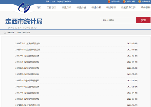 (二)主动公开途径。我局每月在定西统计门户网站和“定西统计”微信公众号上推送统计月报数据,每季度在定西党政网向社会发布经济运行情况,方便社会公众查阅。