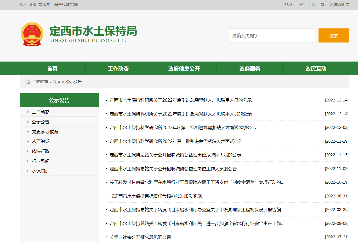 定西市水土保持总站 2022年政府信息公开工作年度报告 |