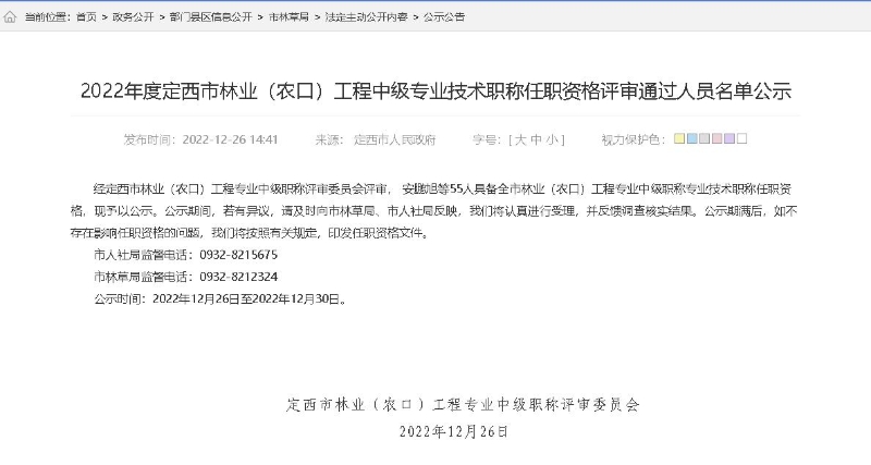定西市林业和草原局2022年度政府信息公开工作年度报告 |
