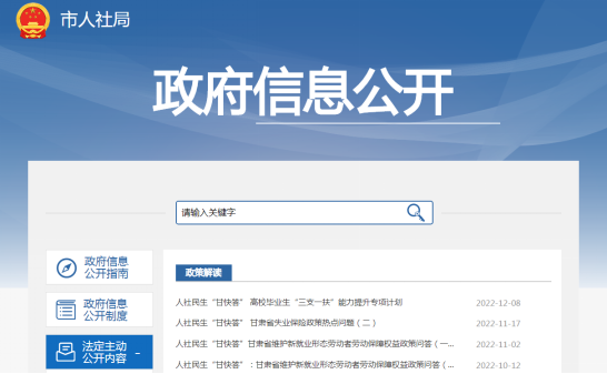 (三)坚持制度优化,提升服务效能。以制度为抓手,拓宽公开范围,细化公开内容,使政务公开工作更深入更科学更规范。一是加强信息发布机制。将政务公开工作纳入重要议事日程,依据《政府信息公开条例》制定政务信息主动公开办法,健全政务公开由办公室负责,局大数据管理中心牵头、局机关各科室和局属事业单位协调配合的信息发布工作机制。对全系统、全局研究贯彻上级文件的意见措施、研究法规性文件和重要政策规定等,及时向社会发布信息,公开会议内容和主题,增强群众的知情权。积极解读人社领域重大政策,及时公布规范性文件和清理结果。二是加强政务服务和办事公开制度。梳理政务服务事项目录,编制实施清单,对事项办事指南、流程图、办结时限、办理依据、适用对象、所需材料清单、监督咨询方式、办理时间地点等要件进行加载上传,共编制人社部门政务服务事项目录127条,已通过定西市政务服务网、服务大厅自助查询机、各服务窗口双屏互动设备、定西政务服务微信公众号等渠道公布;深化政务公开力度,注重将工作向县市区人社局、乡镇人社服务中心等基层单位延伸,全面提高全市人社系统政务公开水平;全面推行“人社快办”行动,所有行政审批材料实行网上公示,行政审批科统一受理,一站式办结;加强“互联网+人社”建设,推进社保服务大厅和金保工程专网融合,为办事企业和群众提供高效的行政审批和社会保险经办服务,打造了网上审批及政务服务的全新模式。三是加强舆情应急处理机制。制定舆情应对风险防控工作实施方案、网络舆情和信访处置工作办法,加强对涉及人社网络舆情的预警防范和监测引导。建立横到边、纵到底、全覆盖的网络舆情队伍,及时发现报告处置涉及相关风险隐患信息,有效避免出现重大舆情事件。加强新闻信息宣传,建立健全新闻发言人制度,确定新闻发言人。及时回应群众诉求,高质量回复12345热线交办件。四是加强督促考评制度。加强督促检查,查找政务公开工作中存在的问题,及时加以整改。加强专项督查,通报局属各单位政务公开进展情况,推动政务公开工作深入开展,发挥考核“指挥棒”作用。