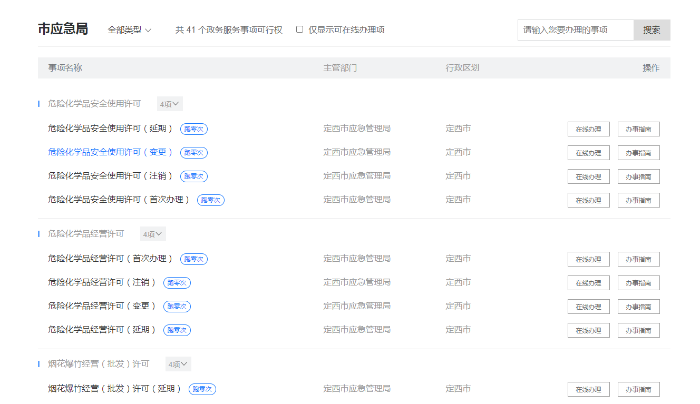 (五)突出重点内容,强化专题建设。紧紧围绕国家和省市重点工作要求,精心策划推出安全生产领域“隐患曝光”、“双控机制构建提升标准化”、“安全承诺、安全预警”、“安全生产月”、“公文公告”和“安全天地”等特色专题栏目,市应急管理局网站栏目由原来的10个专题专栏增加到19个,涵盖了定西市应急管理局所有职能和重点工作。增设“双控体制机制构建,标准化提升”栏目,全方位报道我市安全生产风险分级分类管控和隐患排查治理工作开展落实情况。 (六)发布重大政策,提升解读实效。对印发的政策性文件,严格按照“谁起草、谁解读”的原则,落实政策解读责任,做好政策解读工作。丰富解读形式,积极推进解读文件与原文件实现关联,综合运用图片和文字等多种表现形式,形象生动的解读重要政策,增强可读性。及时发布社会关切的热点重点问题,并对其中的热点问题进行主动回应。 (七)营造便利环境,提供高效服务。在行政审批在线受理工作中,开设了“行政许可”专栏,发布定西政务服务网后台链接,为群众在线申请业务提供便利。同时,进一步完善《行政许可办事指南》、《行政许可业务手册》,修订完善公开办事指南,细化许可流程,公开办理要件,公布联系方式,为群众办理行政审批业务提供高效服务,营造便利环境,实现群众办理业务“最多跑一次”的目标。 二、主动公开政府信息情况