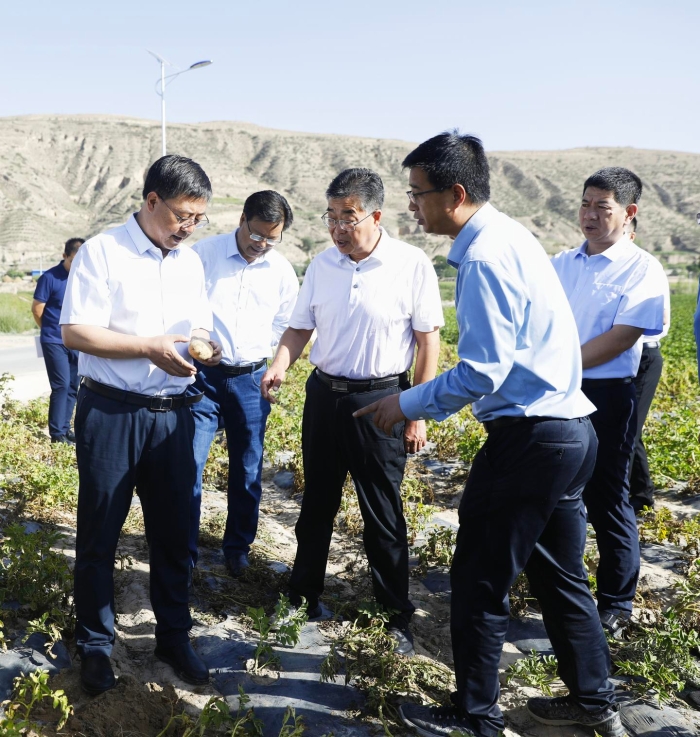 在安定区称钩驿镇阳坡村、巉口镇北川村和陇西县通安驿镇马头川村,汪尚学深入田间地头,实地察看土壤墒情及马铃薯、玉米等秋粮长势,并与相关部门主要负责人、基层干部、农技人员交谈,详细了解农作物、农业防灾减灾等情况。他指出,防旱抗旱工作事关人民群众生命财产安全,事关经济社会发展大局。7月以来,我省持续高温少雨,我市气温偏高,降水偏少,防旱抗旱工作需要引起高度重视。相关县区和部门要迅速行动起来,克服“等靠要”思想,以“时时放心不下”的责任感,把力量沉到一线、措施上到地头,精准研判、分类指导,切实下好抗旱减灾“先手棋”、打好“主动仗”。