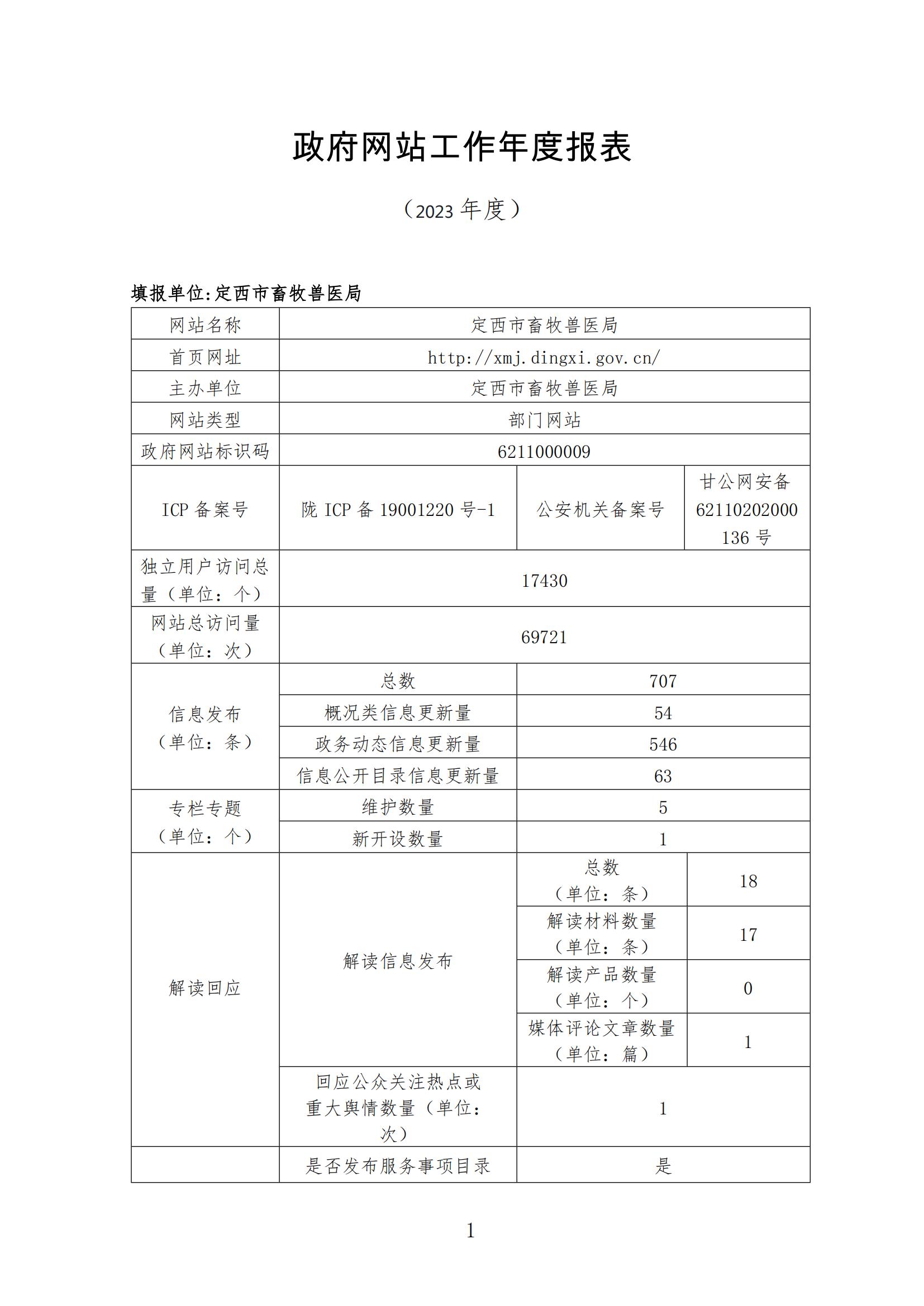 定西市畜牧兽医局2023年度政府网站工作报表