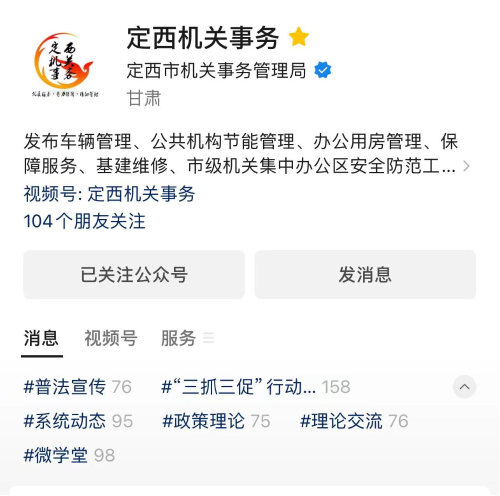 (三)平台建设方面。门户网站,按照市政府办网站建设要求,第一时间在门户网站首页置顶飘红,开设了党的二十大、“三抓三促”行动进行时和陇商通专栏,加载优质稿件。转载发布国家和省、市重大决策部署等权威信息90余篇,积极营造了正能量充沛、主旋律高昂的网上舆论氛围。通过读网巡查,修改完善了栏目无效链接,修改错敏词69处。对网站栏目逐一进行排查检查,完成个别栏目信息的及时更新。政务新媒体,按照《关于认真做好对国务院办公厅<关于推进政务新媒体健康有序发展的意见>贯彻落实工作的通知》要求,贯彻落实《定西市政务新媒体建设管理工作细则》,进一步规范了“定西机关事务”微信公众号和视频号的管理,加大对公众号信息发布的审核,提高媒体公开力度,确保信息发布准确、及时、高效,不断推进决策公开、执行公开、管理公开、服务公开、结果公开。