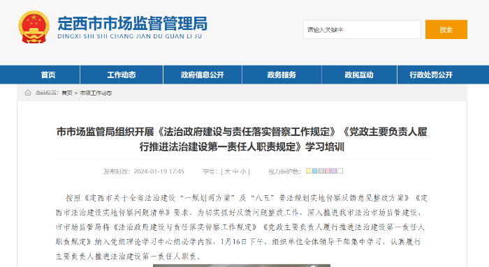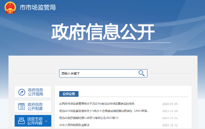 定西市市场监督管理局2023年度政府信息公开工作年度报告 |