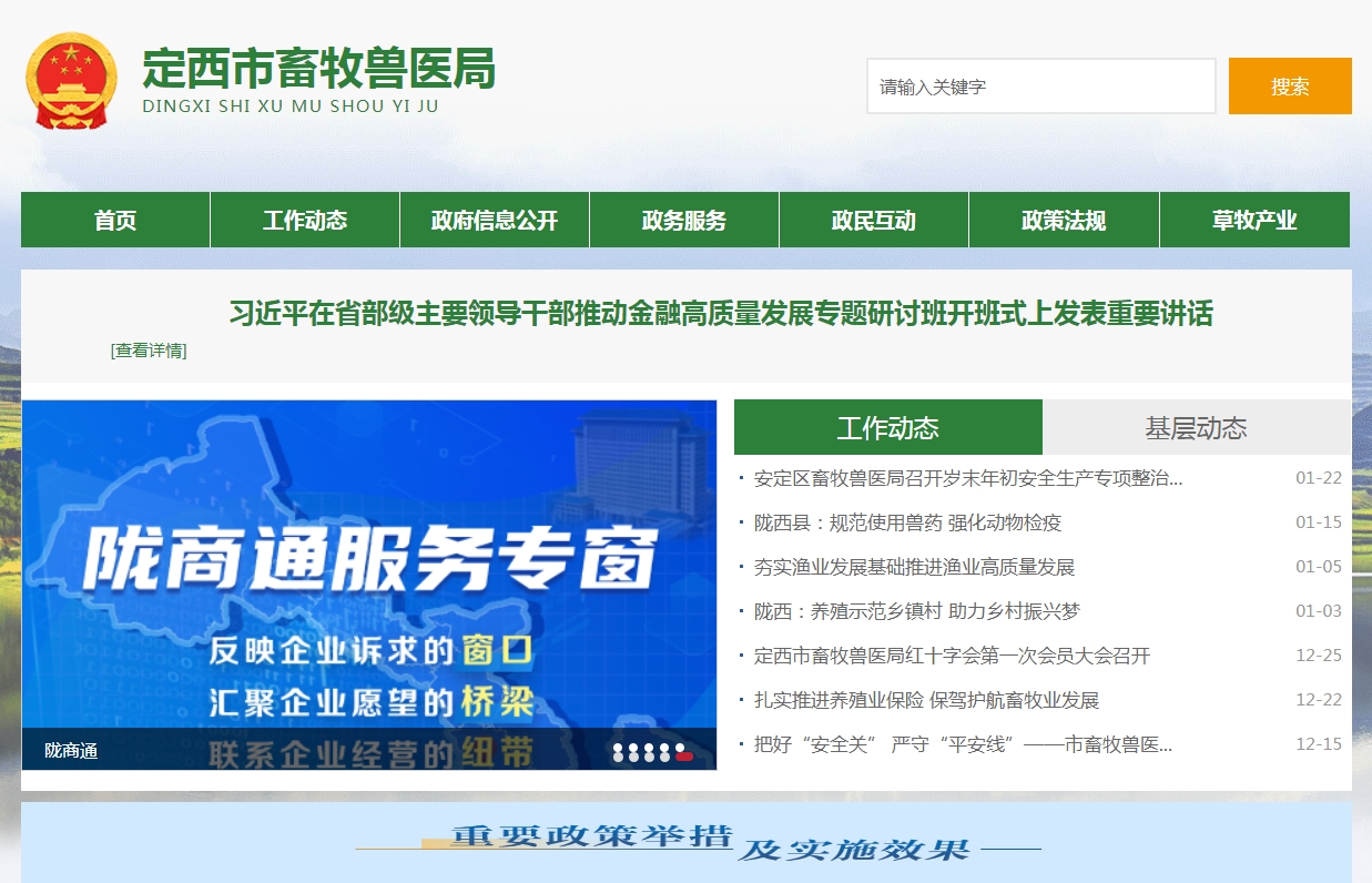 (二)加强平台建设,确保公开全面规范。今年组织全体干部职工学习《政府信息公开条例》2次,及时准确公开各类信息,在定西政务公开平台公开领导之窗、机构职能、政策解读、公示公告、部门文件、财务预决算、代表建议、委员提案办理等信息共计72条;在定西市畜牧兽医局门户网站公开工作动态、基层动态、政策法规、实用技术、市场动态、兽医疫情防控等信息634条;在“定西畜牧”微信公众平台发布行业政策、工作动态等信息840条。