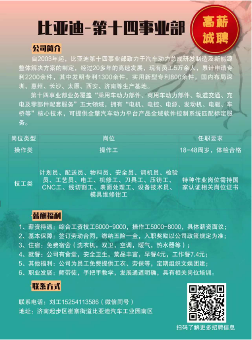 山东省济南起步区崔寨街道比亚迪汽车工业园招聘中心2楼4号面试间
