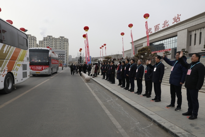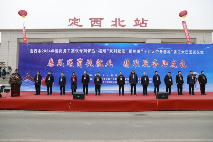 2月19日上午,定西市2024年返岗务工高铁专列青岛福州“双列续发”暨兰州“十万人劳务基地”务工大巴发送仪式在定西北站广场举行。市委书记汪尚学出席并讲话。