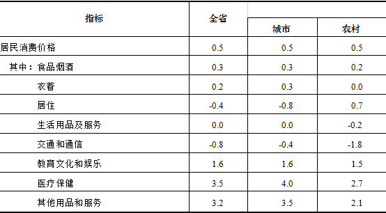 全年城镇新增就业32.01万人,其中失业人员再就业13.90万人。全年输转城乡富余劳动力523.2万人,其中,省外输转230.6万人,省内输转292.6万人。 全年居民消费价格比上年上涨0.5%。农产品生产者价格上涨3.3%。工业生产者出厂价格下降4.1%。工业生产者购进价格下降7.5%。 表2 2023年甘肃省居民消费价格比上年涨跌幅度 单位:%