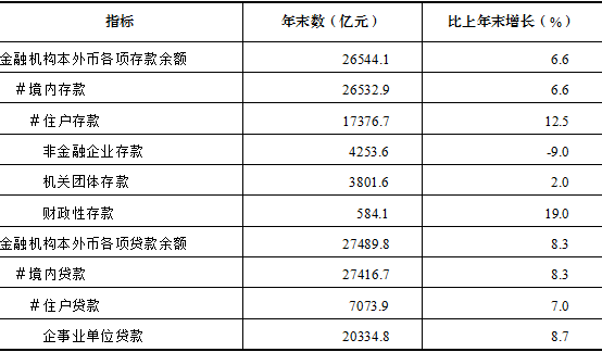 全年房地产开发投资比上年下降14.8%,其中住宅投资下降11.4%。房屋施工面积12102.5万平方米,下降1.4%,其中住宅施工面积8874.3万平方米,下降0.9%。在房屋施工面积中,房屋新开工面积1577.9万平方米,下降25.1%,其中住宅新开工面积1210.6万平方米,下降27.1%。房屋竣工面积1241.1万平方米,下降35.2%,其中住宅竣工面积977.0万平方米,下降34.2%。商品房销售面积1496.7万平方米,增长1.8%,其中住宅销售面积1426.8万平方米,增长2.8%。 七、财政金融 全年全省一般公共预算收入1003.5亿元,比上年增长10.6%。其中,税收收入698.5亿元,增长19.9%;非税收入304.9亿元,下降6.1%。从主体税种看,国内增值税322.3亿元,增长55.2%;企业所得税82.3亿元,下降2.8%;个人所得税24.8亿元,增长5.0%。一般公共预算支出4518.5亿元,增长6.1%。其中,民生支出3569.5亿元。 年末全省金融机构本外币各项存款余额26544.1亿元,比上年末增长6.6%,其中人民币各项存款余额26488.3亿元,增长6.7%。金融机构本外币各项贷款余额27489.8亿元,增长8.3%,其中人民币各项贷款余额27407.3亿元,增长8.4%。 表8 2023年甘肃省金融机构本外币各项存贷款余额及其增长速度