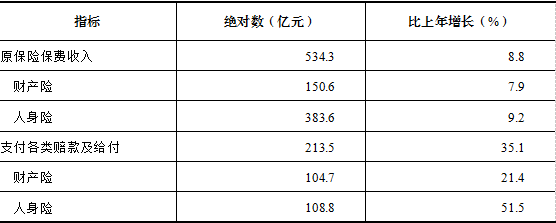 年末全省境内上市公司36家,比上年末减少1家。其中,A股上市公司35家,H股上市公司1家。A股上市公司总市值2959.6亿元,比上年增长2.4%。 全年保险公司原保险保费收入534.3亿元,比上年增长8.8%;支付各类赔款及给付213.5亿元,增长35.1%。 表9 2023年甘肃省保险业务情况