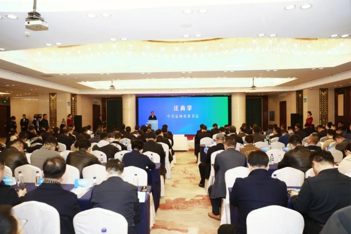 汪尚学在致辞中说,定西通称“陇中”,历史厚重、交通便捷、资源富集、多彩多姿,“壮美定西”魅力独特。定西因药而兴、因薯而名,特别是中医药产业特色优势明显,自古就以“千年药乡”“天然药仓”著称,是全国道地、优势地产中药材主产区之一,正在全力打造“中国药都”。随着甘肃省打造中医药千亿级产业集群,定西在生物医药、大健康产业等方面发展前景广阔、商机无限。我们愿沐浴着东西协作的春风,以药为媒搭建合作交流平台,热忱欢迎青岛市的各位企业家和各界人士到定西来考察洽谈、投资兴业,一起分享“药都薯乡”的发展机遇,携手开创“互利共赢”的美好未来。希望签约项目双方持续加强沟通对接、加快协议转化,力促合作项目早落地、早投产、早见效。定西将拿出“凡是别的地方能做到的,我们也将必须做到,别的地方做不到的,我们也将全力做到”的最大诚意,提供优质高效、便捷精细的政策支持和跟踪服务,全方位保障来定投资企业放心投资、安心经营、舒心发展。