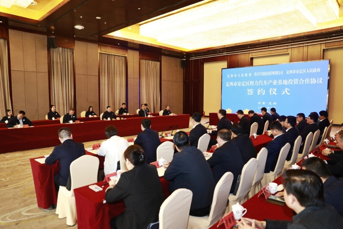 3月31日上午,定西市安定区程力汽车产业基地项目举行签约仪式,定西市人民政府、安定区人民政府与程力汽车集团股份有限公司签订投资合作协议。市委书记汪尚学、程力汽车集团股份有限公司董事长程阿罗出席签约仪式并讲话。 市委副书记、市长武和谦致辞,市委常委、安定区委书记蔺红军主持仪式,市领导寇继军、李进强、范红梅及宋军兵出席。