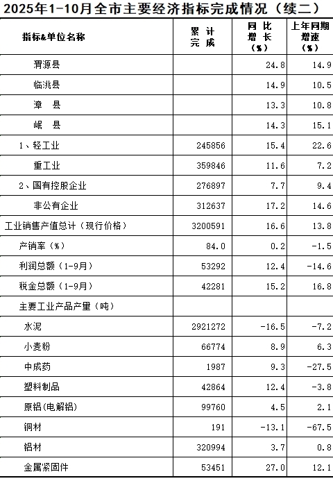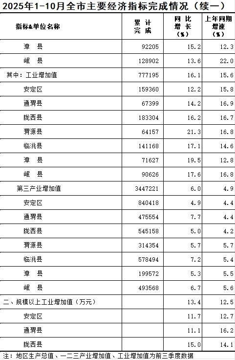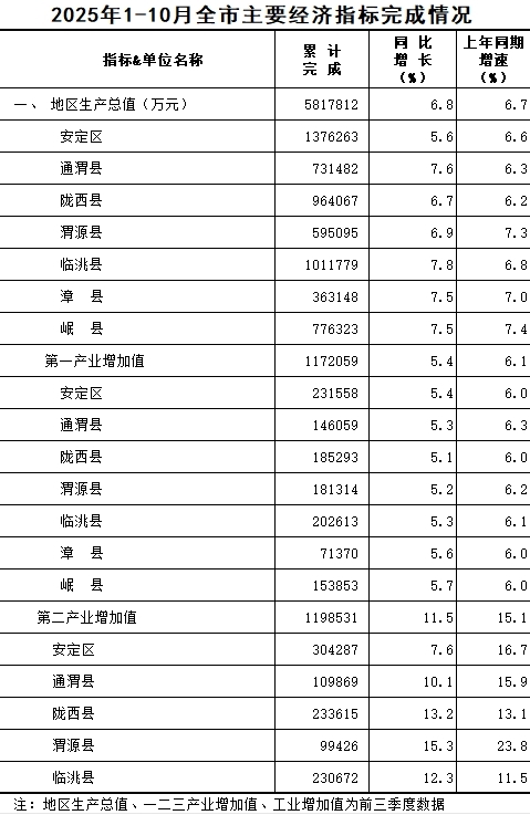 2025年1-10月定西统计月报
