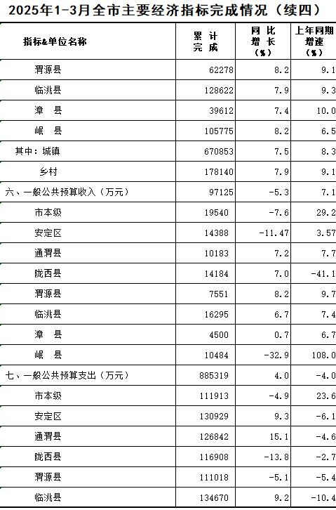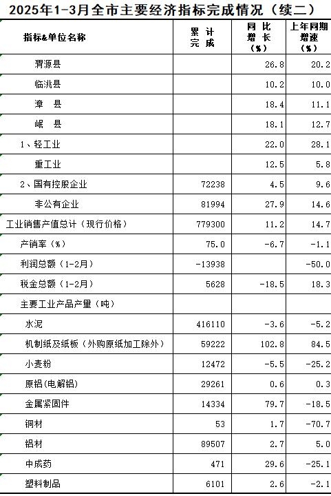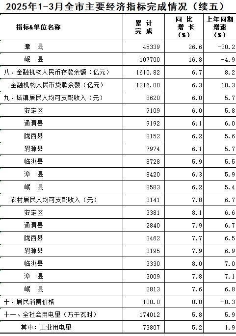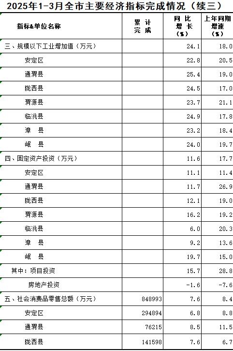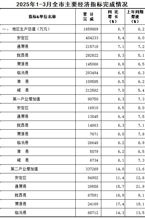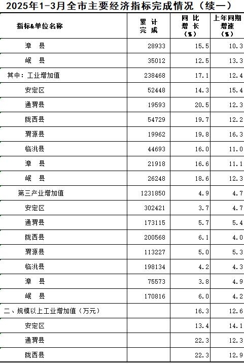 2025年1-3月定西统计月报