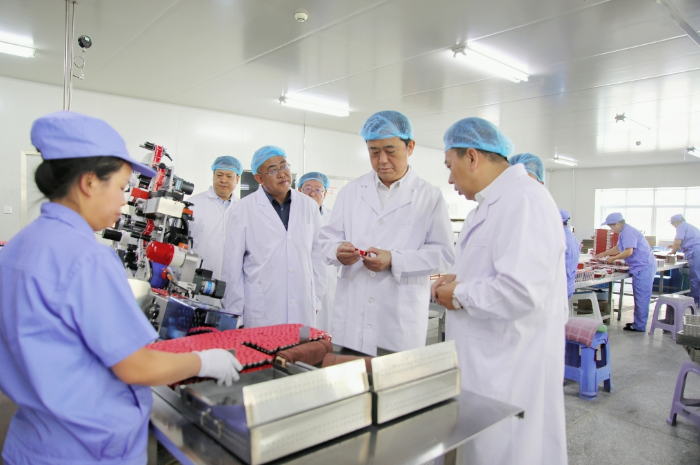 武和谦先后来到陇西药圃园、首阳万亩中药材标准化种植基地、甘肃陇西中医药产业孵化园、永峰堂药业、甘肃之骄制药有限公司、甘肃广药白云山中药科技有限公司调研,实地了解中药材种子种苗繁育、标准化园区运营发展、企业生产经营等情况,就良种选育驯化、标准化种植、药食同源产品研发、中药材品质与效益双提升等与企业负责人进行交流。他强调,要依托国家中医药产业发展综合试验区、国家中医药传承创新发展试验区和中国(甘肃)中医药产业博览会三大“国字号”平台,完善“政产学研金服用”融合发展机制,利用“人工智能+”赋能产业升级,聚焦药源基地建设、道地药材保护、产品创新研发等关键环节,加快培育发展中医药新质生产力,持续壮大中医药产业链条、打造中医药产业集群。