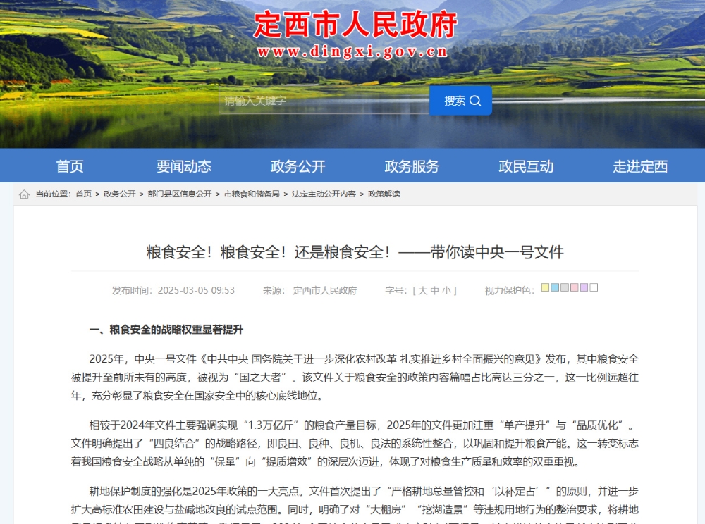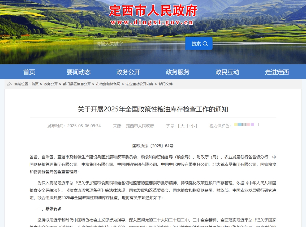 定西市粮食和物资储备局2025年度政府信息公开工作年度报告 |