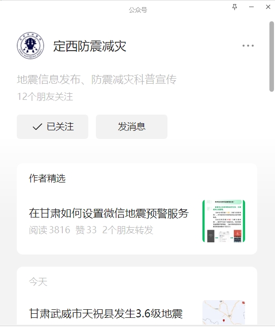 (二)公开形式 在主动公开信息工作中,为方便公众了解信息,我局主要通过三种形式发布政府信息: 1.依托定西市政府政务公开平台公布。 2.在“定西防震减灾”微信公众号上设置“政务信息”“政务公开”栏,为公民、法人和其他组织提供政府信息。