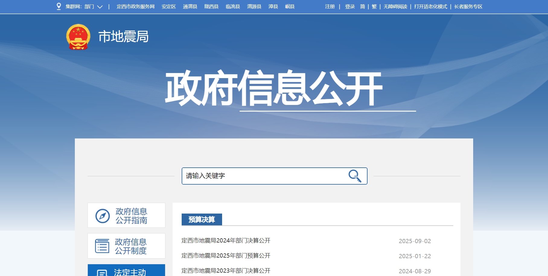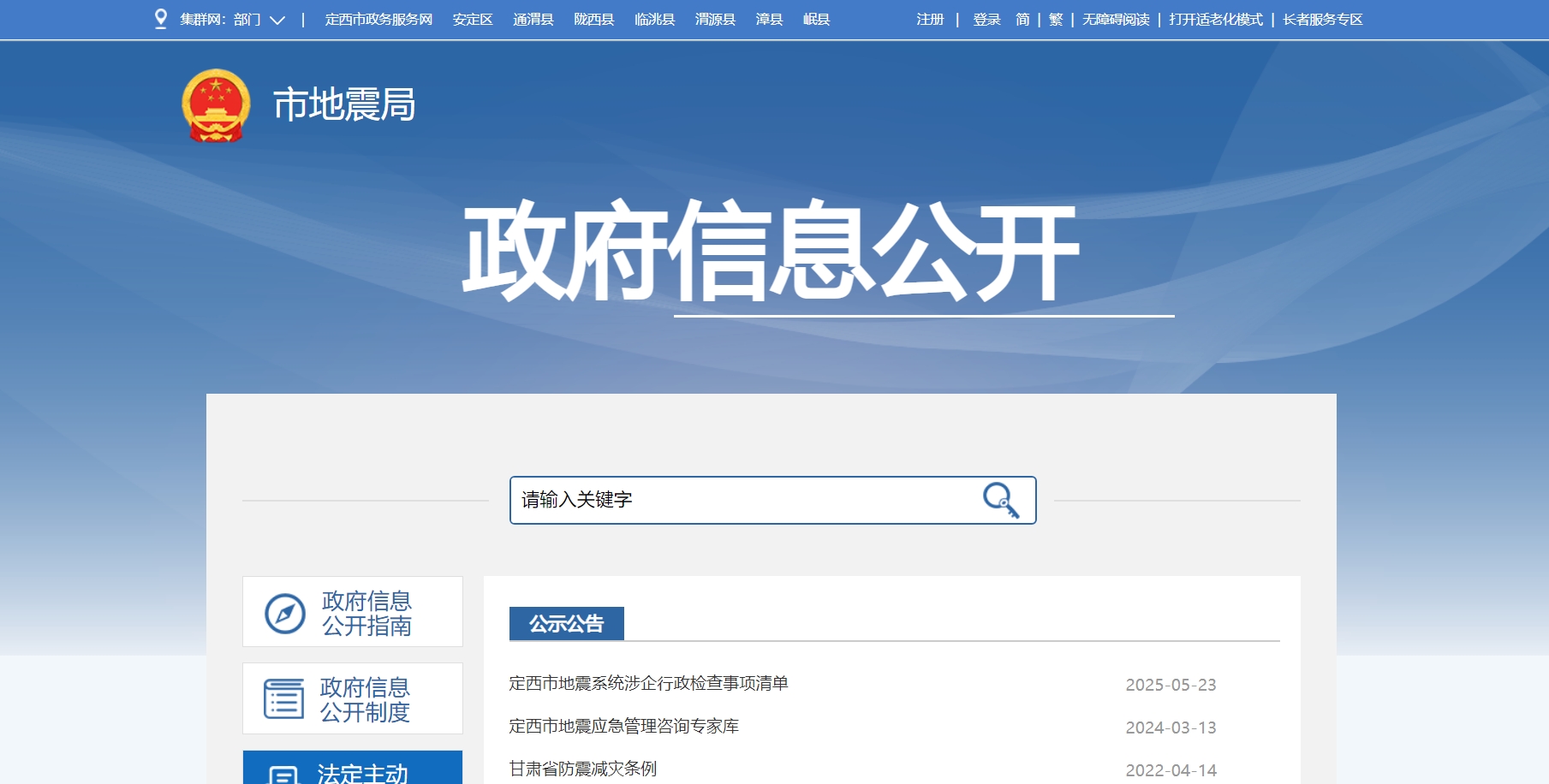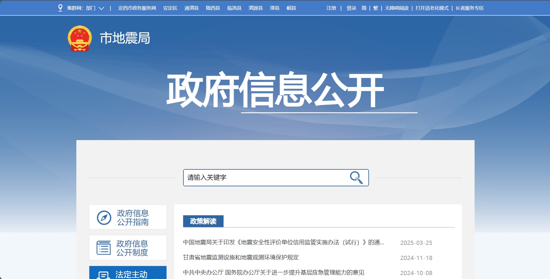 3.通过定西电视台、定西日报发布部分主动公开的政府信息。 4.在便民服务方面,我局按照规范统一的要求,编制了《定西市地震局政府信息公开指南》、《定西市地震局政府信息公开目录》和相关细则流程等。