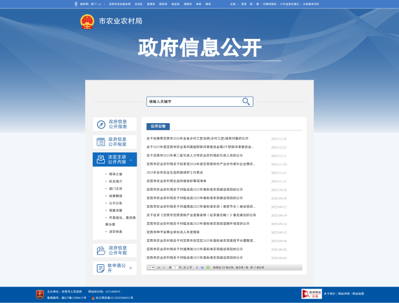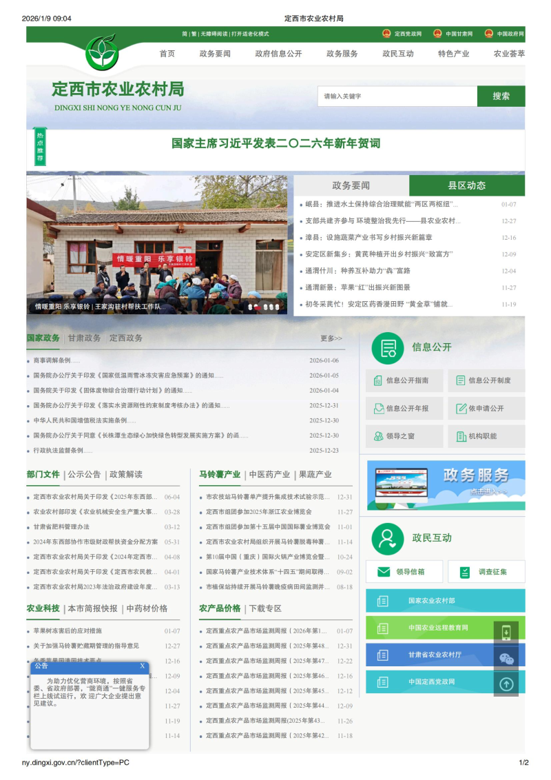 定西市农业农村局2025年政府信息公开工作年度报告 |