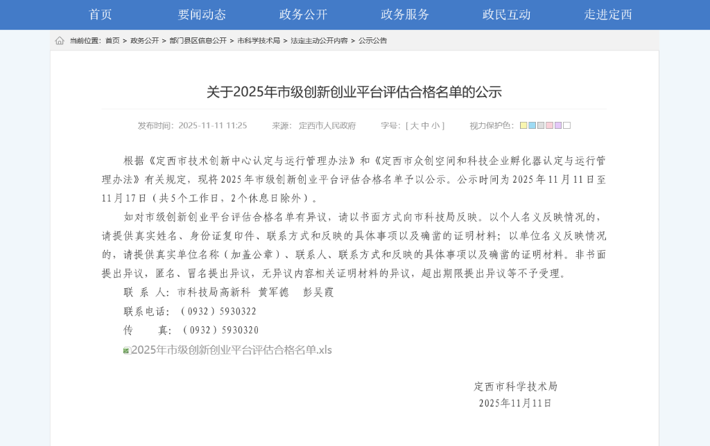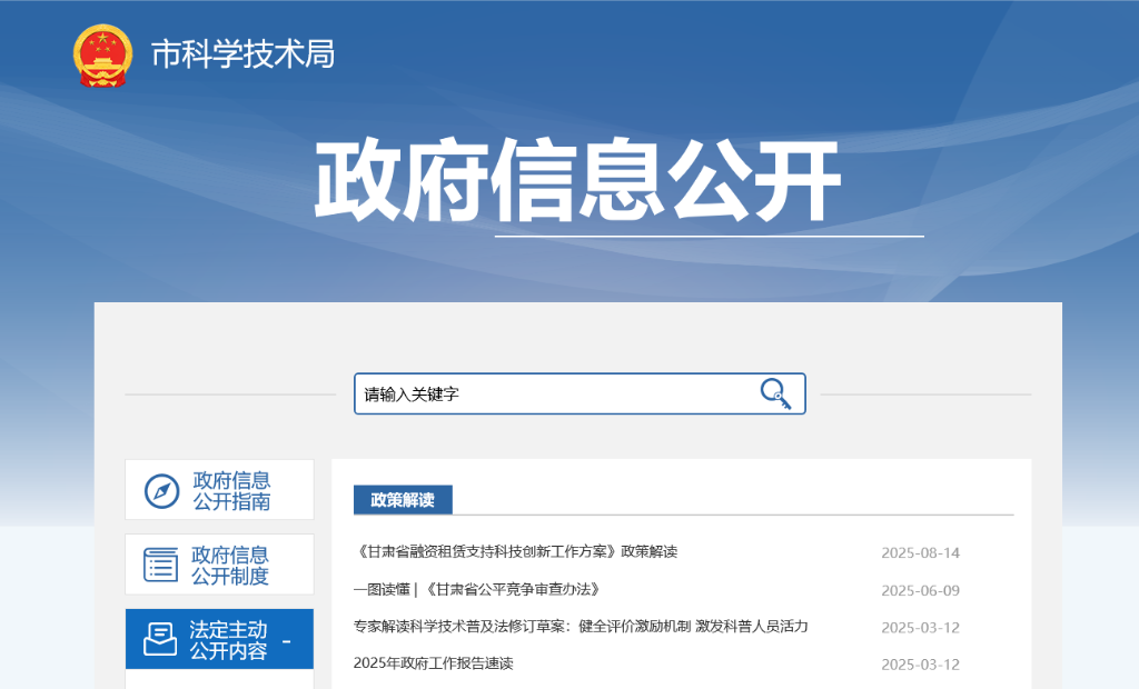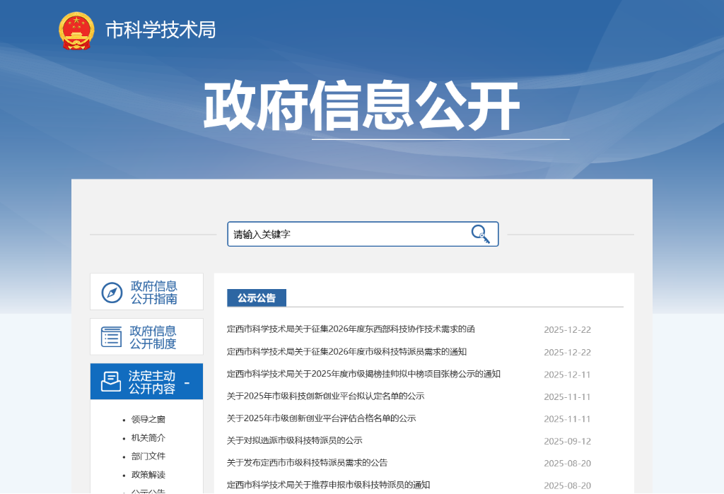 定西市科学技术局2025年度政府信息公开工作年度报告 |