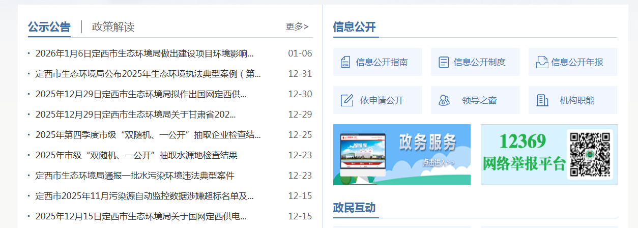 定西市生态环境局2025年政府信息公开工作年度报告 |