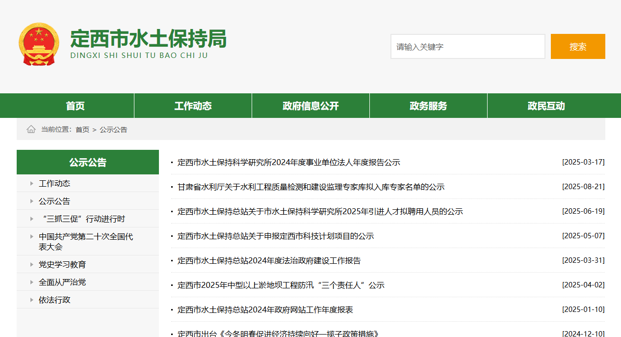 定西市水土保持总站2025年政府信息公开工作年度报告 |