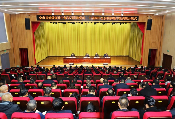 1月5日,全市县处级领导干部学习贯彻党的二十届四中全会精神集中轮训班开班。市委书记汪尚学出席并作辅导讲话。他强调,要深入学习贯彻党的二十届四中全会和省委十四届九次全会精神,全面落实市委五届十二次全会暨市委经济工作会议部署要求,锚定目标、坚定信心,聚力攻坚、接续奋斗,坚定不移推动高质量追赶发展。