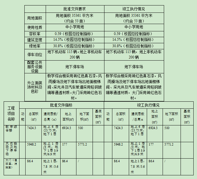 土地核验和规划核实意见:经2024年11月18日现场踏勘核实,该项目建设内容符合《规划条件通知书》(定自然规建条[2022]15号)、《建设工程规划许可证》(建字第621100202200031号)、《定西市自然资源局关于定西市安定区公园路中学教学综合楼、风雨操场及地下停车场建设项目设计方案的批复》(定自然资源函字[2022]426号)要求,原则同意通过土地核验和规划核实。 公示日期:2024年11月25日至2024年11月29日 (共5个工作日) 联系电话:0932-8312726