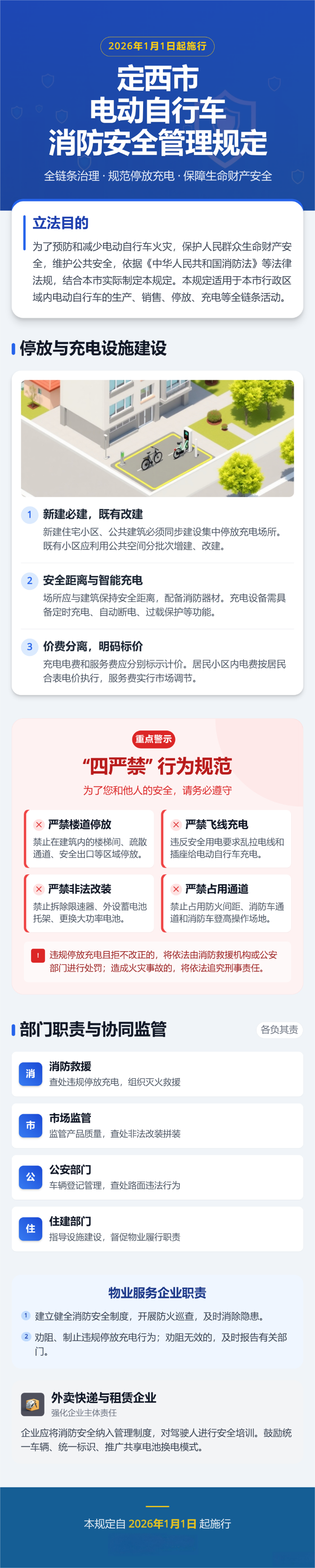 长图 | 一图读懂《定西市电动自行车消防安全管理规定》